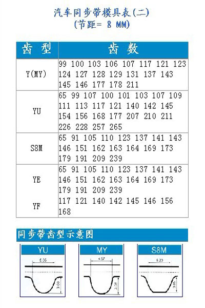 齒 型 | 節(jié) 距(mm) | 齒 高(mm) | 查 看 |